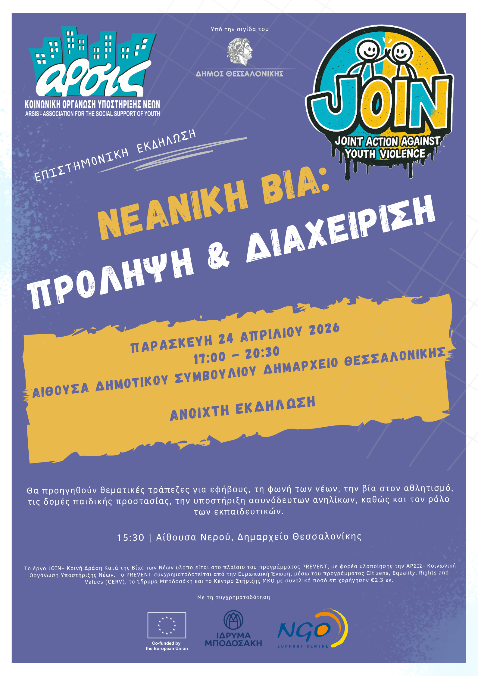 Next steps of the Civilhood project coordinated by ARSIS, the roundtable in Athens on Thursday 02 November, entitled: "Integration of unaccompanied minors: opportunities, challenges and policy proposals" and the second cycle of trainings for professionals on the project's produced training material on the weekend 02-04 November (Calls - Publications forthcoming).