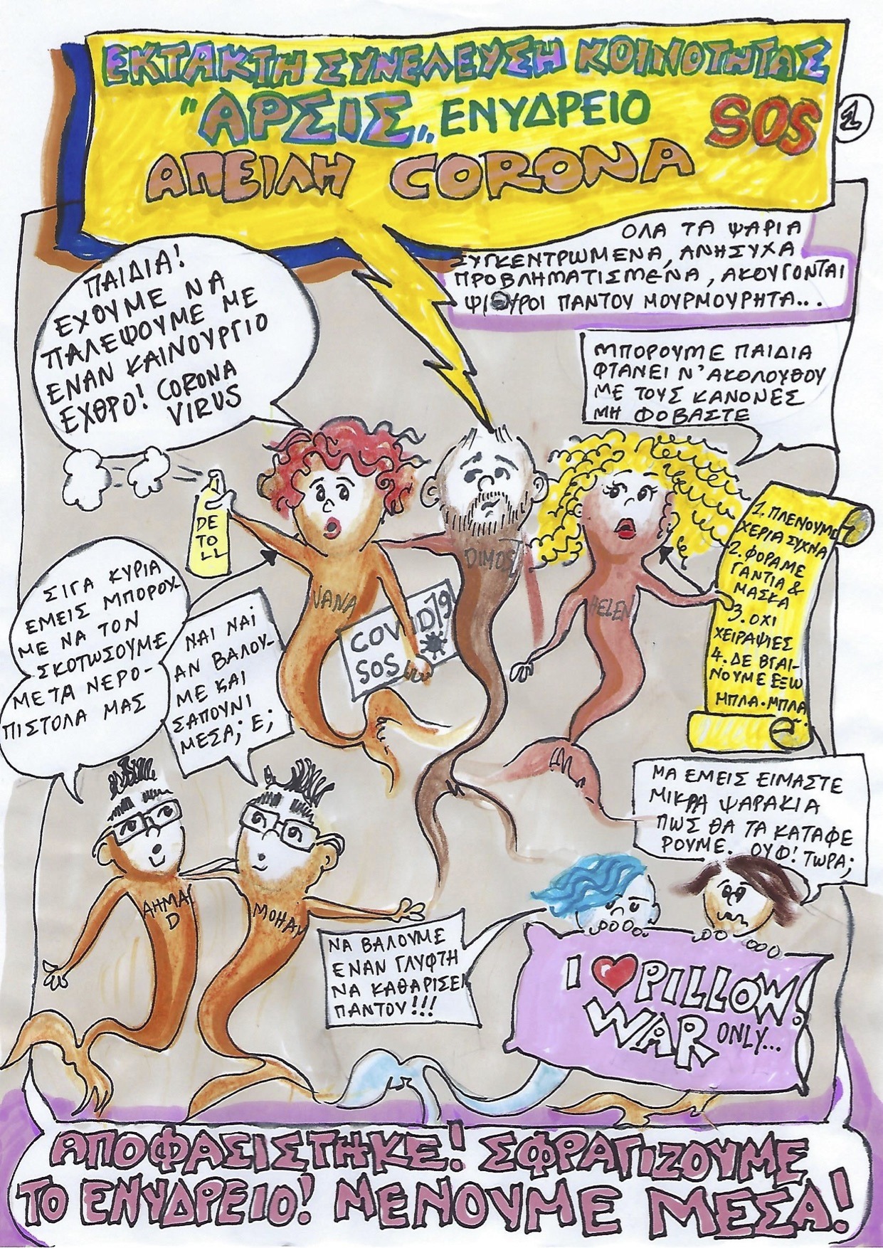Με τη δύναμη της φαντασίας και της τέχνης του κόμικ, η κοινότητα της ΑΡΣΙΣ μετατρέπεται σε ενυδρείο και τα προσφυγόπουλα σε ψαράκια, οι αποφάσεις παίρνονται στη συνέλευση με τη συμμετοχή όλων, τα ασυνόδευτα ανήλικα μαθαίνουν το περιεχόμενο φράσεων όπως, “Γίνε η αλλαγή που θέλεις να γίνεις”, προσεγγίζουν θεωρητικά και κάνουν πράξη έννοιες όπως αυτή της κοινωνικής αλληλεγγύης, της ευθύνης απέναντι στην κοινότητα καθώς και της προσφοράς.