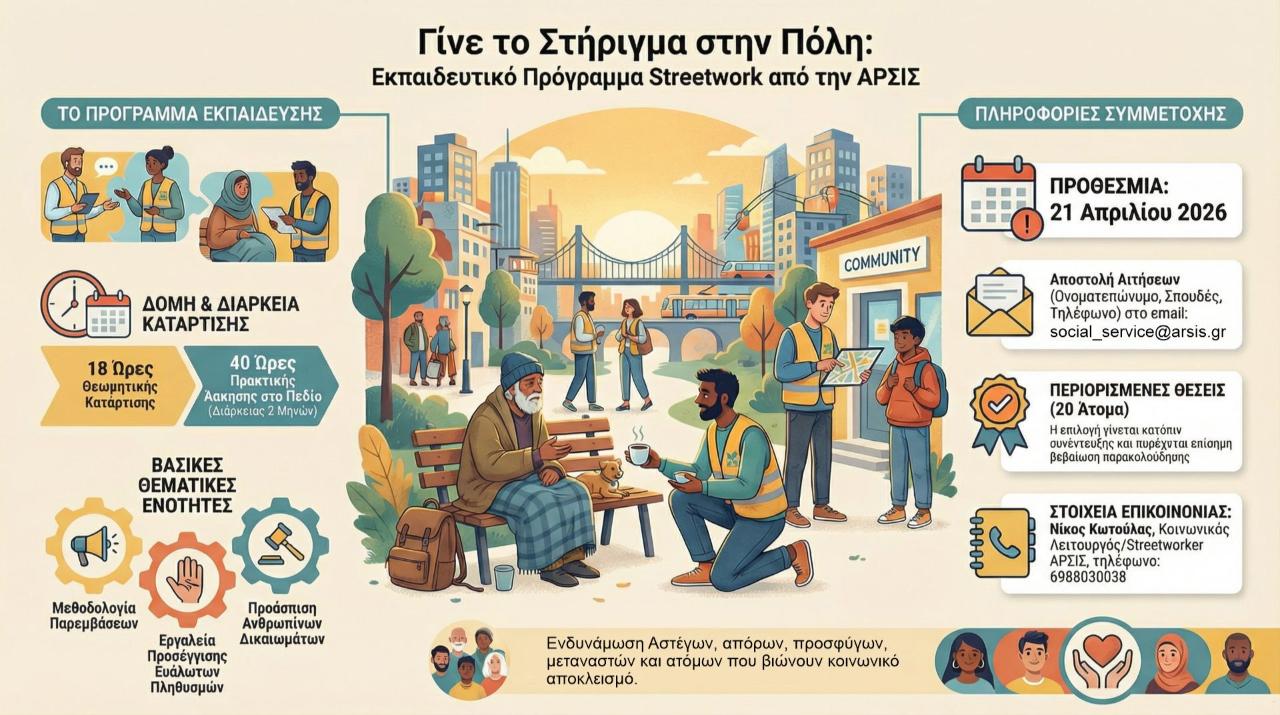 Η ΑΡΣΙΣ – Κοινωνική Οργάνωση Υποστήριξης Νέων προκηρύσσει μια θέση Εργασιακού Συμβούλου με σύμβαση ορισμένου χρόνου πλήρους απασχόλησης στο πλαίσιο του έργου «HELIOS+: ολοκληρωμένες δράσεις