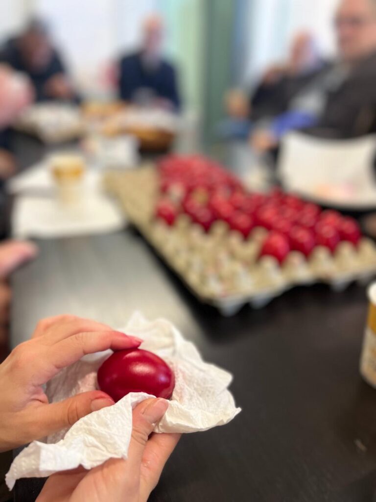 Συνοδεύσαμε τη δράση μας με καφέ και παραδοσιακό τσουρέκι, ενώ δεν έλειψαν οι συζητήσεις, οι αναμνήσεις και οι προσωπικές ιστορίες γύρω από το Πάσχα.