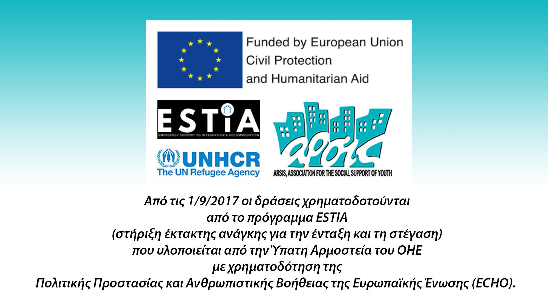 *Το πρόγραμμα ESTIA (στήριξη έκτακτης ανάγκης για την ένταξη και τη στέγαση) υλοποιείται από την Ύπατη Αρμοστεία του ΟΗΕ με χρηματοδότηση της Πολιτικής Προστασίας και Ανθρωπιστικής Βοήθειας της Ευρωπαϊκής Ένωσης (ECHO).