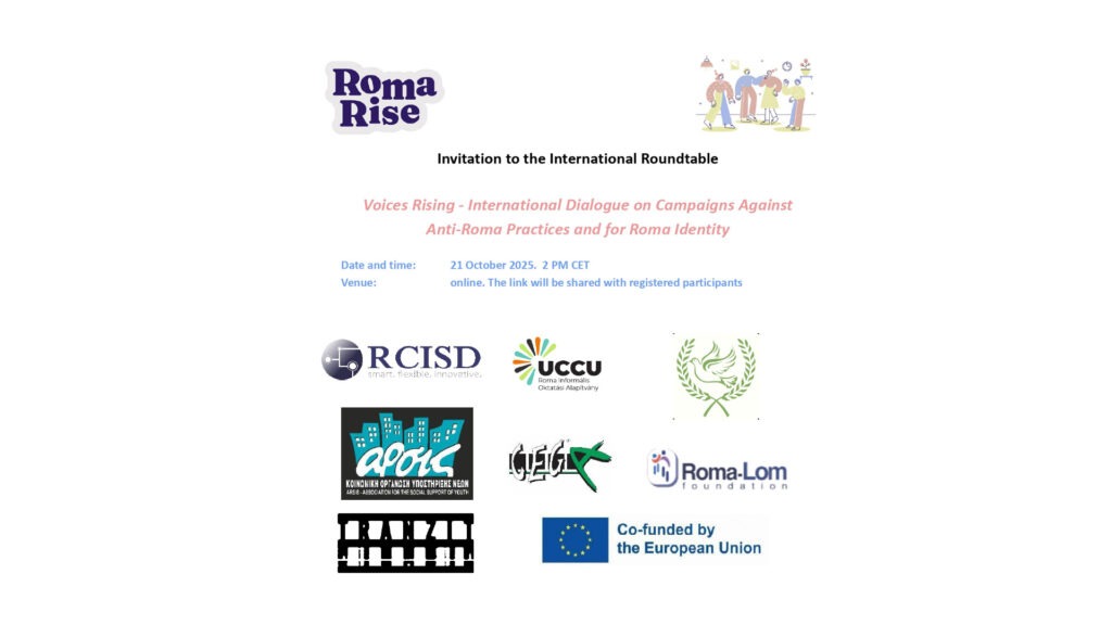 Με χαρά η Κοινωνική Οργάνωση Υποστήριξης Νέων ΑΡΣΙΣ σας προσκαλεί στη στρογγυλή τράπεζα με τίτλο Voices Rising – International Dialogue on Campaigns Against Anti-Roma Practices and for Roma Identity, η οποία θα πραγματοποιηθεί διαδικτυακά στις 21 Οκτωβρίου 2025 στις 14:00 CET.