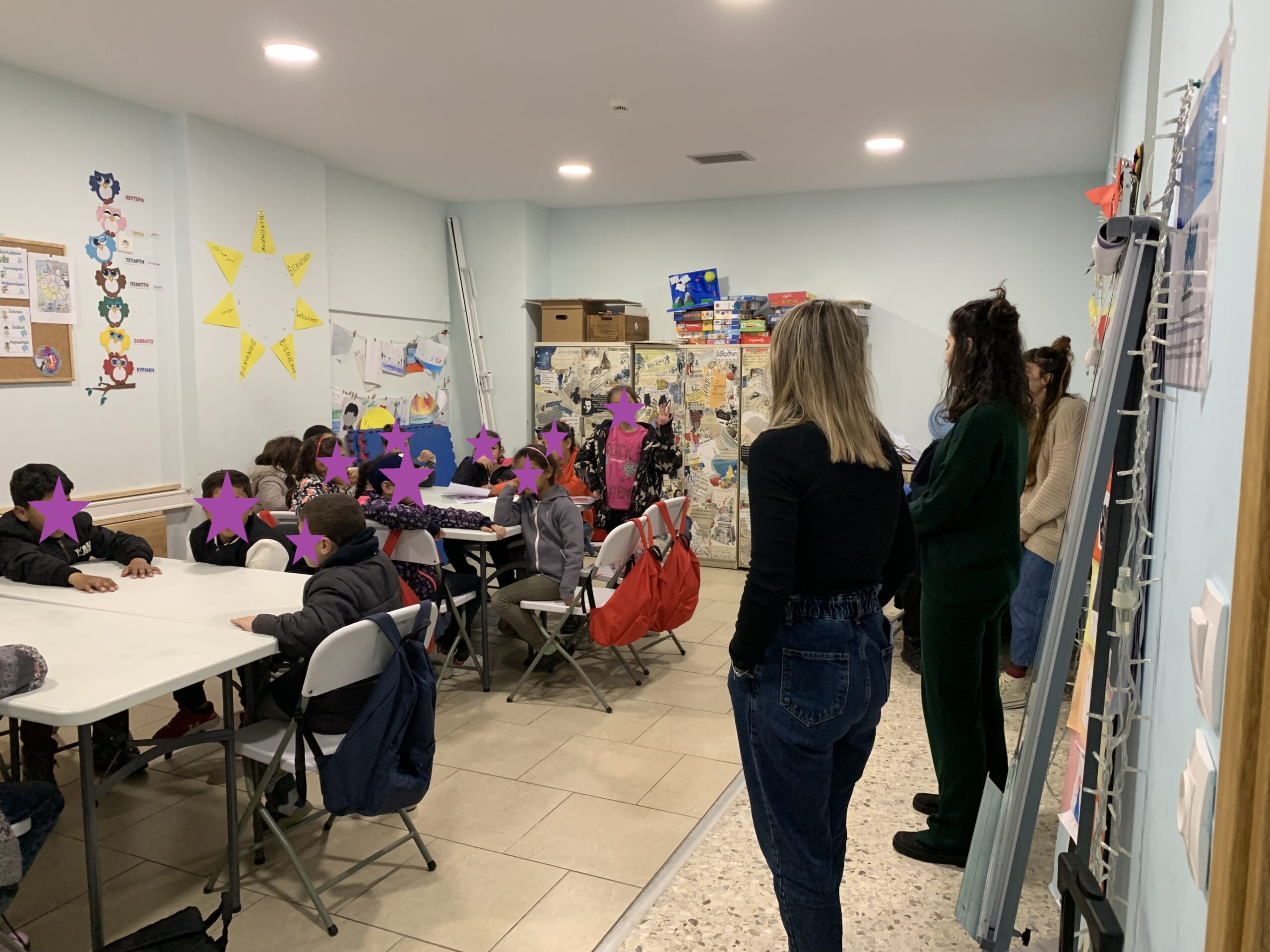 Σε συνεργασία με τις δασκάλες και τον διερμηνέα του Κέντρου, τα παιδιά εξέφρασαν τη δική τους οπτική για τον ρόλο τους στο πλαίσιο της τάξης, τι σημαίνει για εκείνα να βρίσκονται μέσα στην τάξη και ποιους στόχους θέτουν για την εκπαιδευτική τους πορεία. Στη συνέχεια, δημιουργήσαμε το «Συμβόλαιο τάξης», το οποίο χωρίσαμε σε δύο μέρη. Το ένα μέρος αποτελούνταν από τους στόχους της ομάδας και το άλλο από τις ατομικές ενέργειες που εν τέλει βοηθούν στην επίτευξή του.